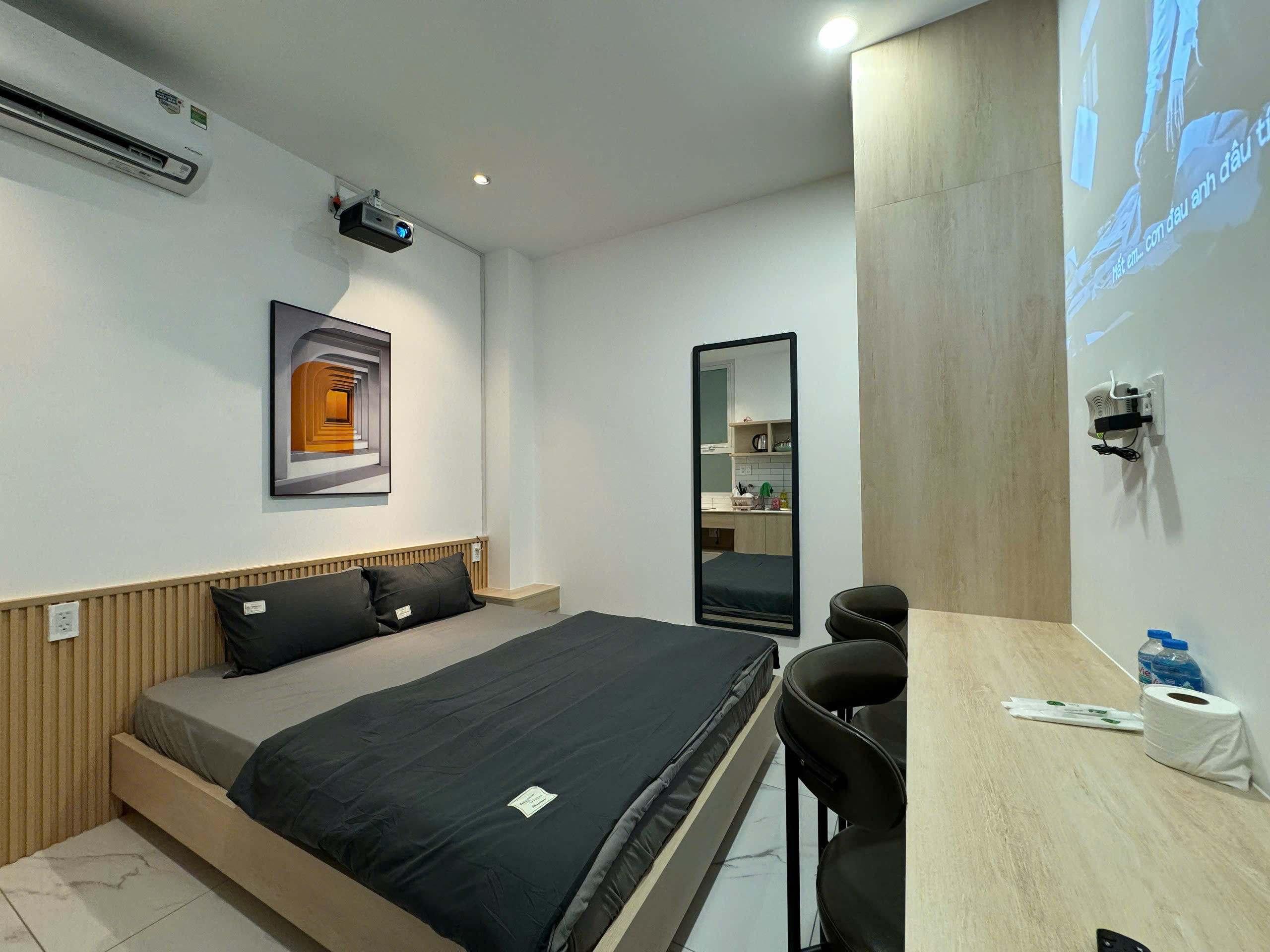 Căn hộ dịch vụ nằm ngay trung tâm quận sầm uất TP. Hồ Chí Minh, được trang bị đầy đủ nội thất cao cấp: giường nệm dày, tivi thông minh, máy lạnh, máy giặt, khu bếp tiện nghi… Tất cả sẵn sàng để bạn chỉ cần xách vali vào ở.