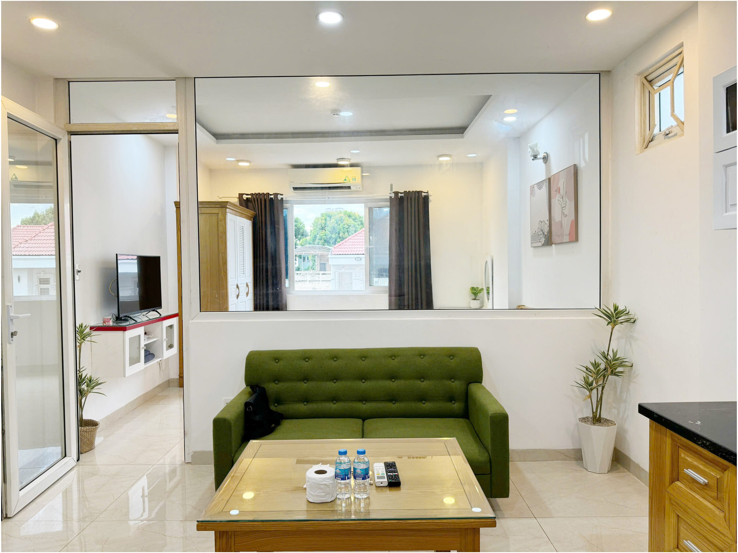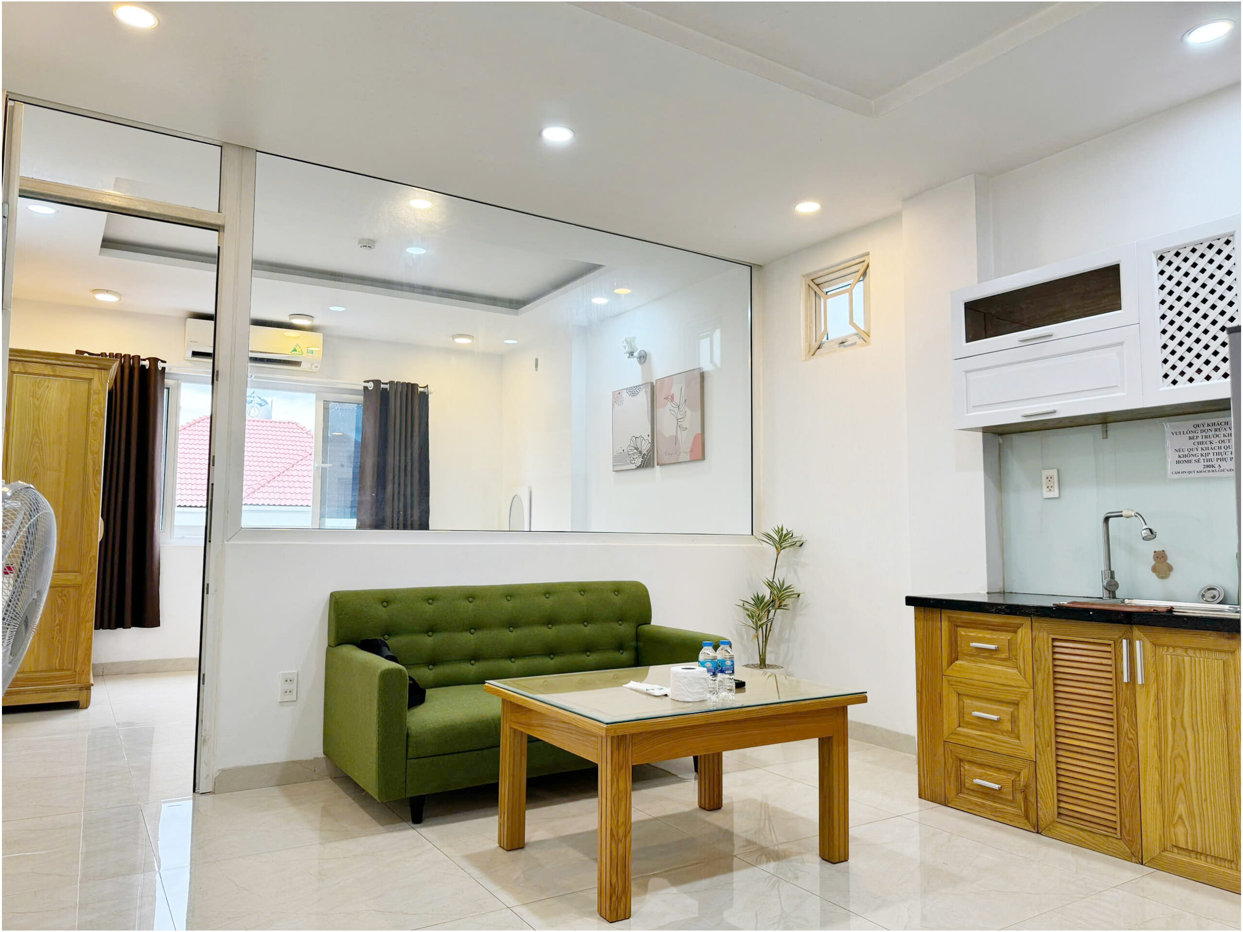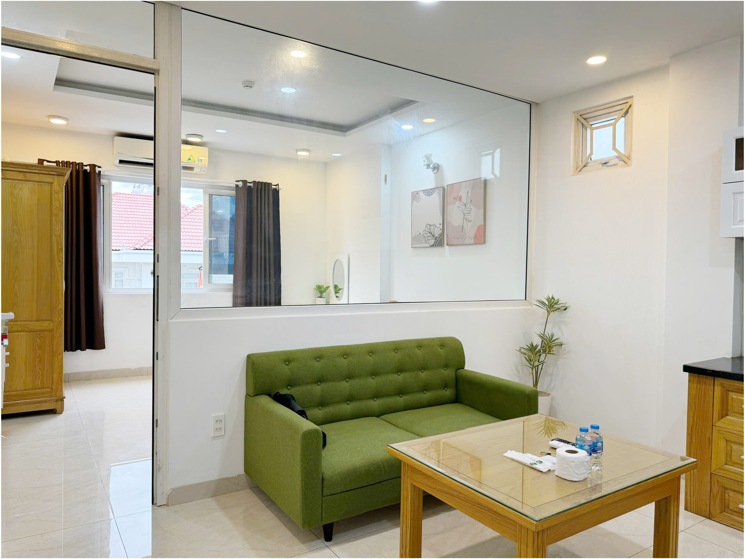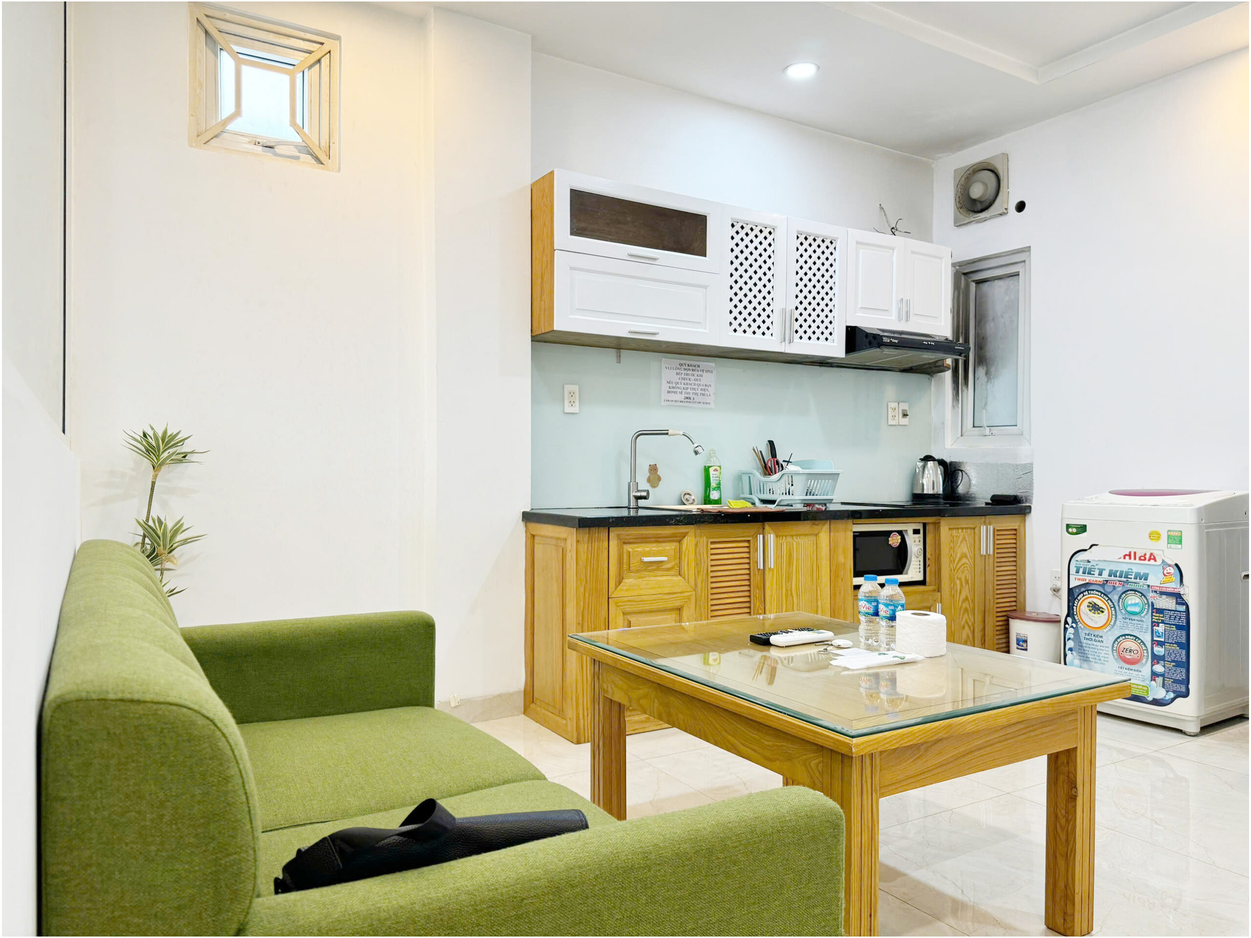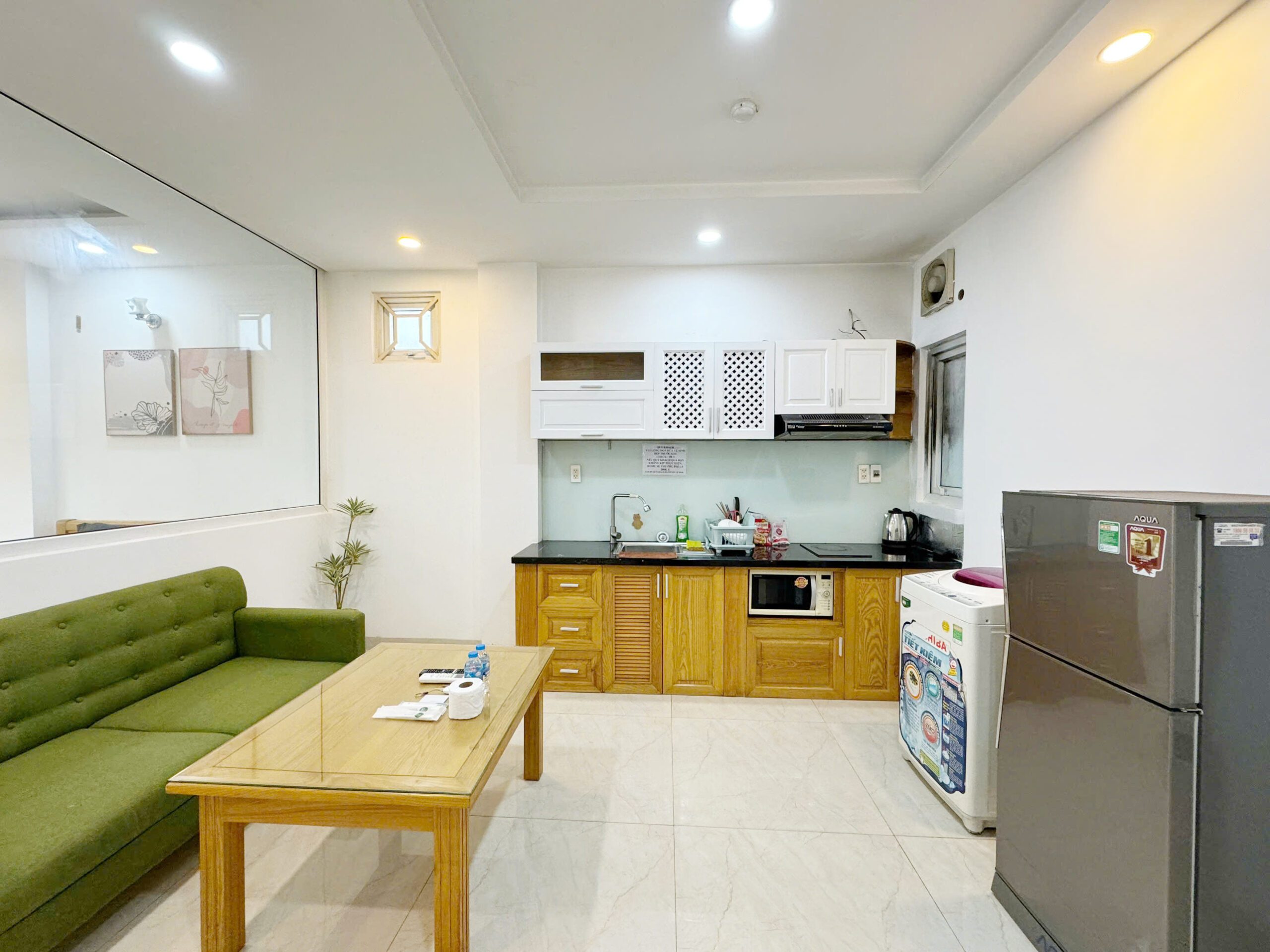 Căn hộ dịch vụ nằm ngay trung tâm quận sầm uất TP. Hồ Chí Minh, được trang bị đầy đủ nội thất cao cấp:  giường nệm dày, tivi thông minh, máy lạnh, máy giặt, khu bếp tiện nghi… Tất cả sẵn sàng để bạn chỉ cần xách vali vào ở.