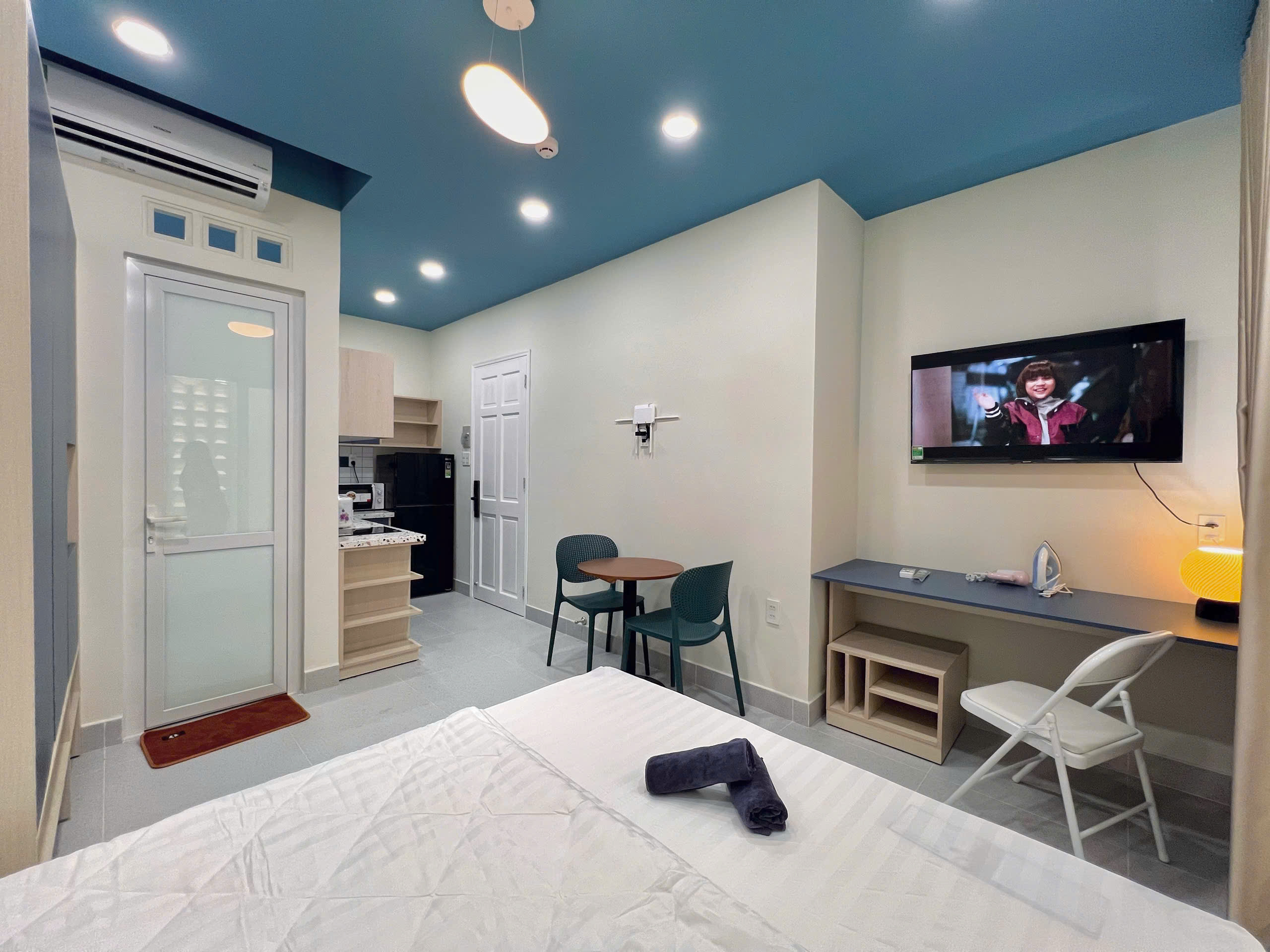 Căn hộ dịch vụ nằm ngay trung tâm quận sầm uất TP. Hồ Chí Minh, được trang bị đầy đủ nội thất cao cấp: giường nệm dày, tivi thông minh, máy lạnh, máy giặt, khu bếp tiện nghi… Tất cả sẵn sàng để bạn chỉ cần xách vali vào ở.